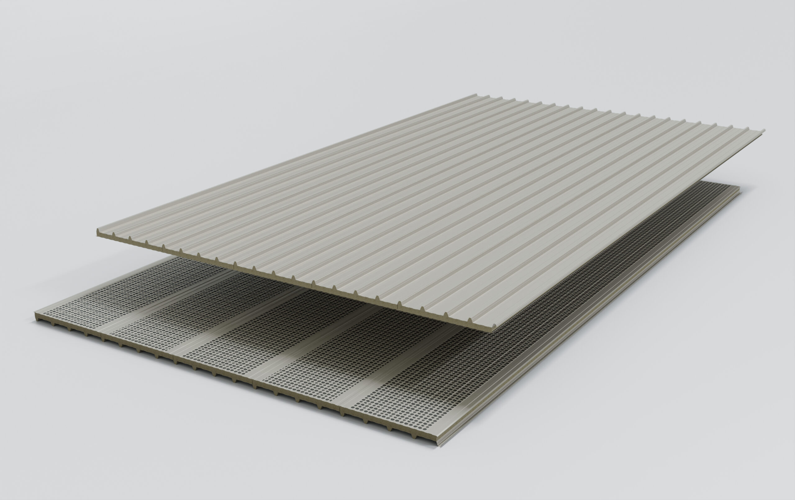 - The role of the perforated internal liner, solid external steel sheet, and Rockwool core in controlling both transmitted noise and internal reverberation in overhead applications.